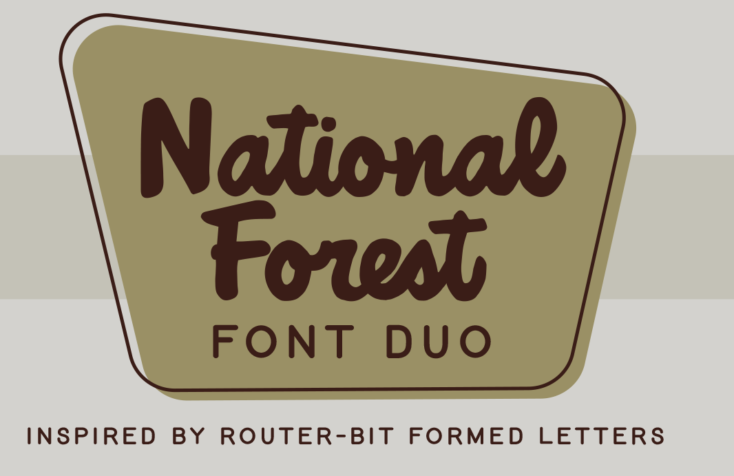 Complete family of 5 fonts:.. The "forest" uses headliner no. National forest script by mini press. 45 by kc fonts, with slight modification on the left side of the f bar.. National forest font free download, national forest is a font duo inspired by the national park service signs that are all made using a router bit.